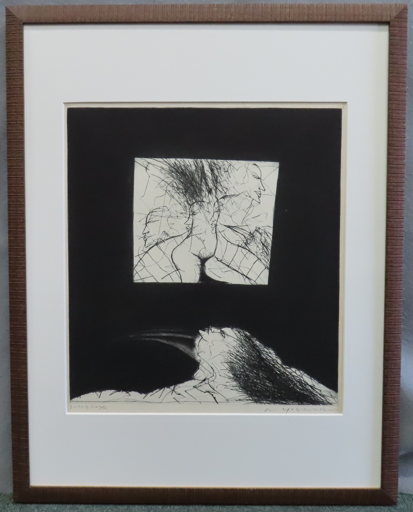 氏は求心的な技法ともいえるドライポイントに本格的に取り組み、半世紀に渡って自身の内からこみ上げる怒りや喜びなどをニードル(鉄筆)で銅版に刻みながら作品を作り続けてきました。