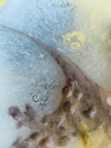 パート・ド・ヴェールとは、粉末状のガラスを型に詰めて焼き固める技法です。ワルターはこの手法に独自の色彩感覚と造形美を加え、芸術作品としての完成度を高めました。焼成はおよそ800〜900度。ガラスを完全に溶かさず、粒子が結びつく寸前で止める繊細な温度管理が求められます。ワルターはこの“境界の美”を見極め、焼成後数十時間かけてゆっくり冷却し、石膏型を壊して作品を取り出します。