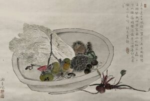 【店内作品紹介/津田青楓 『水盤蔬菜の図』秋の掛軸】