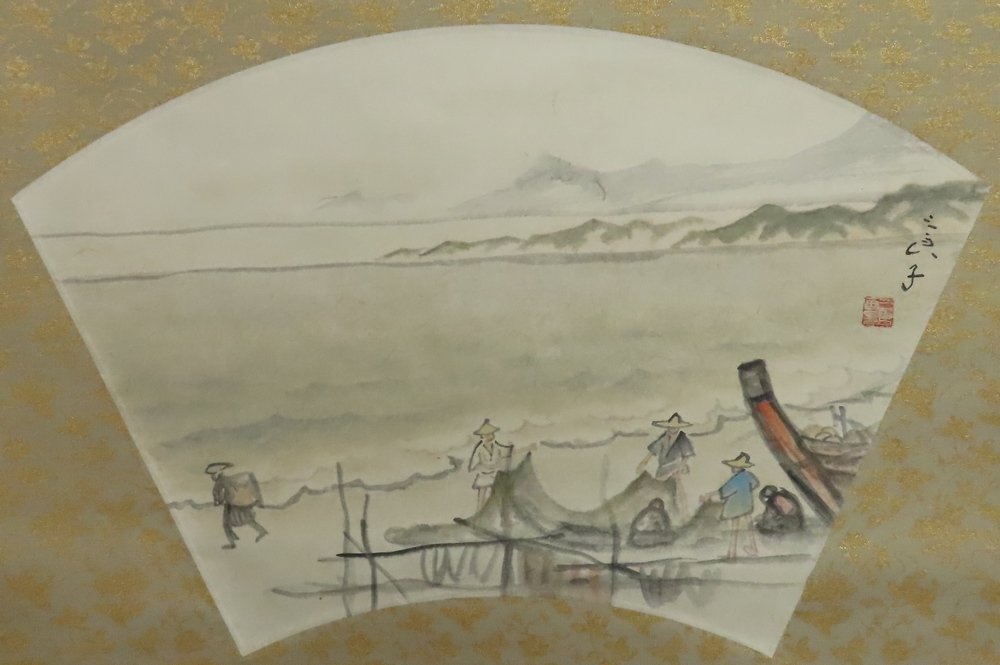 【2025年ヤフーオークション掲載情報/酒井三良子 『漁村 扇面』】