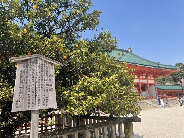 また手前の庭には、桜と橘が配されています。橘にまつわる話で、「右近の橘」をご存知でしょうか。